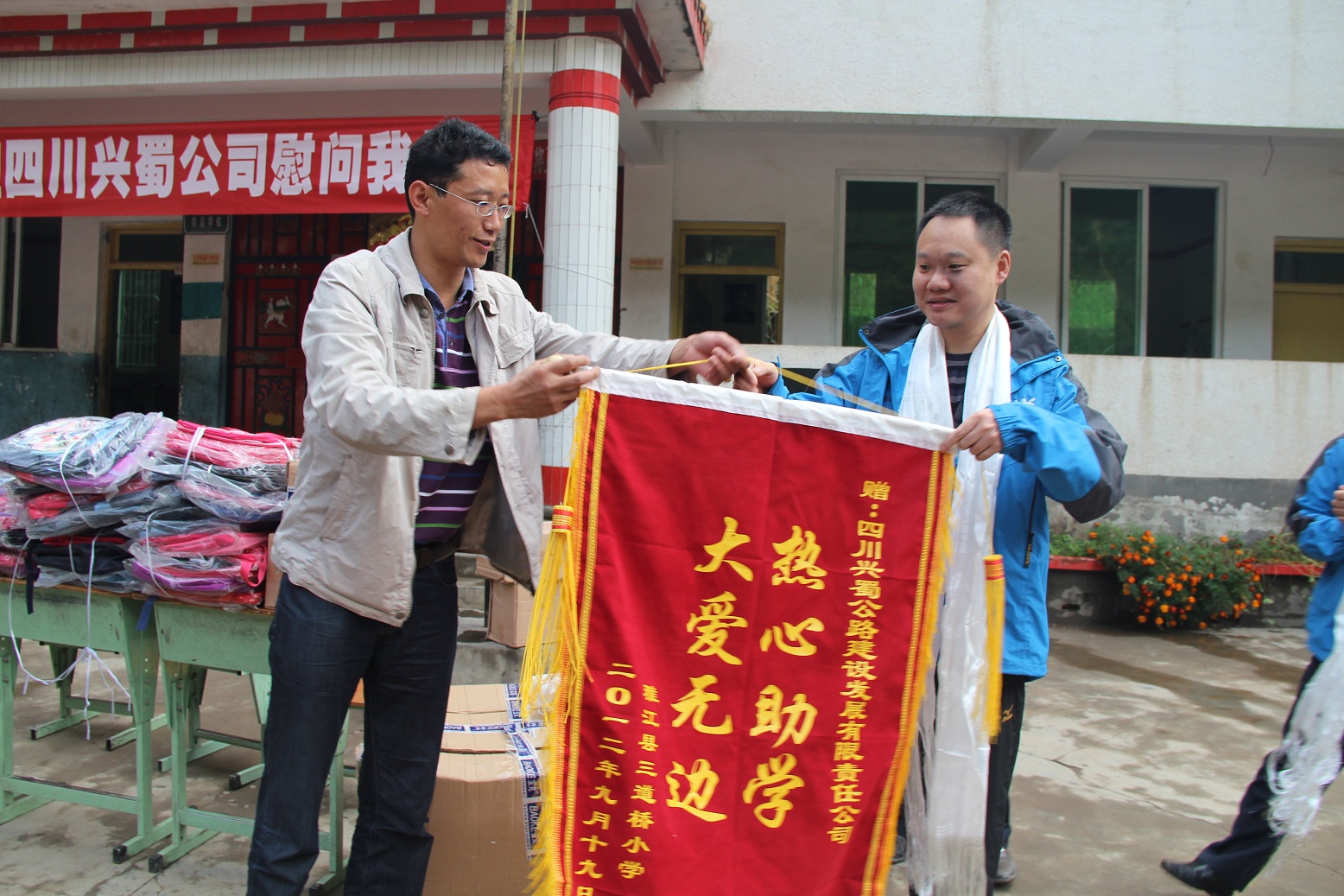 興蜀人用實(shí)際行動(dòng)踐行著“興蜀興路,路優(yōu)人和”的使命。三道橋小學(xué)于校長(zhǎng)也代表全體師生向興蜀公司傾心助教的行為表示衷心的感謝,并贈(zèng)送了“熱心助學(xué)、大愛無邊”的錦旗。