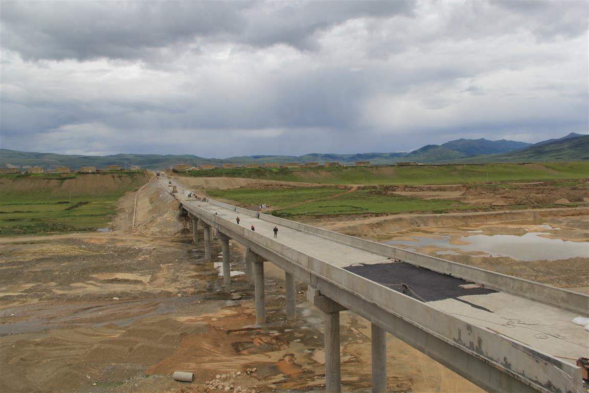 溫泉大橋設計為6跨30米預應力T梁,吊裝重量近80噸。全體參建人員克服高原惡劣的施工條件、交通運輸不便等困難。不斷根據施工進度情況及時調整施工作業方案,保質保量地完成了指揮部下達的節點工期任務。目前大橋橋面已正式移交給路面施工單位進行瀝青砼鋪筑工作。