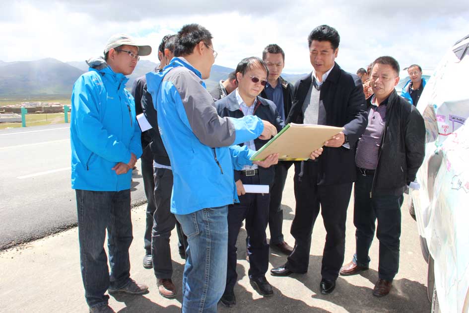 2014年8月28日至29日,四川省交通運輸廳張琪副廳長、廳公路局于天才副局長一行調研公司甘孜州工程項目建設,并看望慰問了奮戰在高原一線的建設職工。