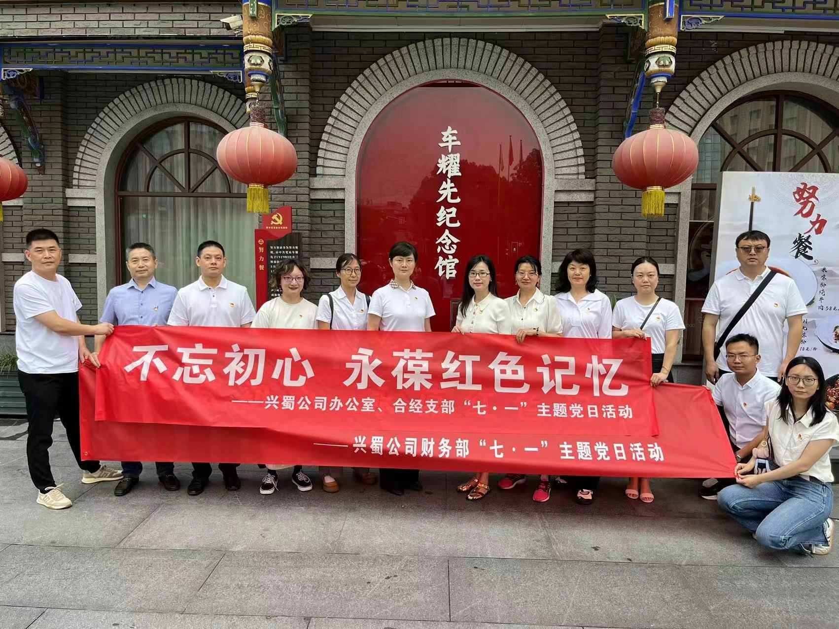 2024年7月1日是中國共產黨成立103周年。為緬懷革命先烈,銘記黨的光輝歷史,興蜀公司辦公室支部、合同經營支部、財務支部于6月28日開展以“不忘初心 永葆紅色記憶”為主題的黨日活動,前往車耀先紀念館參觀學習。