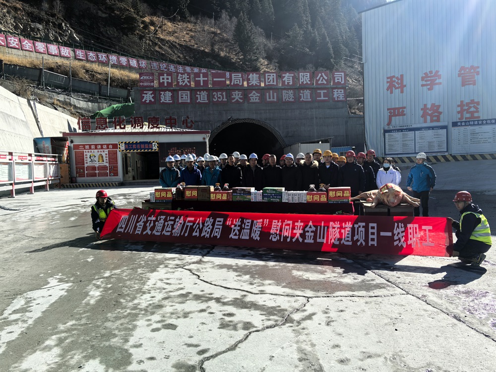 12月26日,省交通運輸廳公路局二級巡視員錢育鋒帶隊赴G351夾金山隧道項目開展“冬送溫暖”慰問活動。