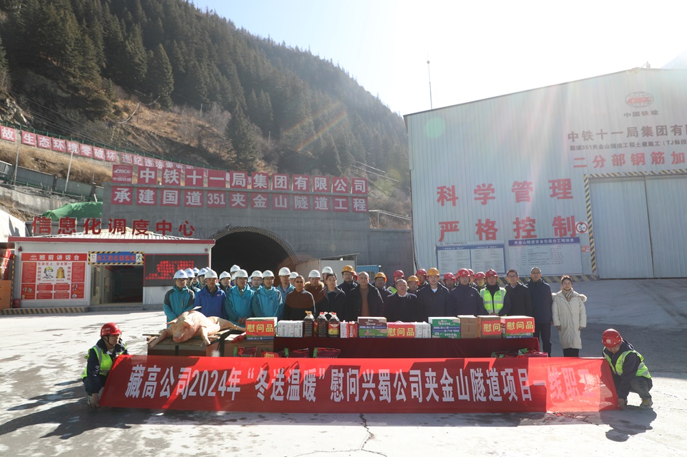 12月26日,藏高公司黨委書記、董事長韓瑀萱帶隊赴G351夾金山隧道調研項目建設情況,并開展“冬送溫暖”慰問活動。