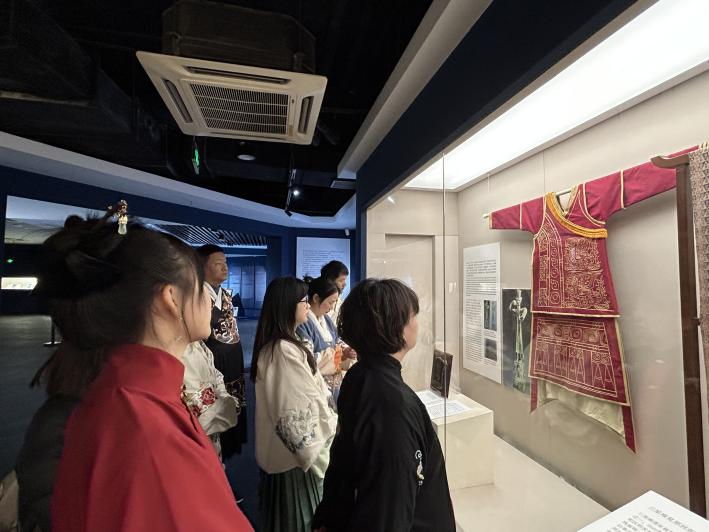 穿越千年,感受智慧流淌。在成都蜀錦織繡博物館,青年們身著漢服,體會蜀錦蜀繡的獨特文化魅力,品味神秘的古蜀文化想象、漢代的吉祥雋語、唐宋的胡風交融、明清的繁復華美,領略了不同歷史時期蜀錦和蜀繡的風采。