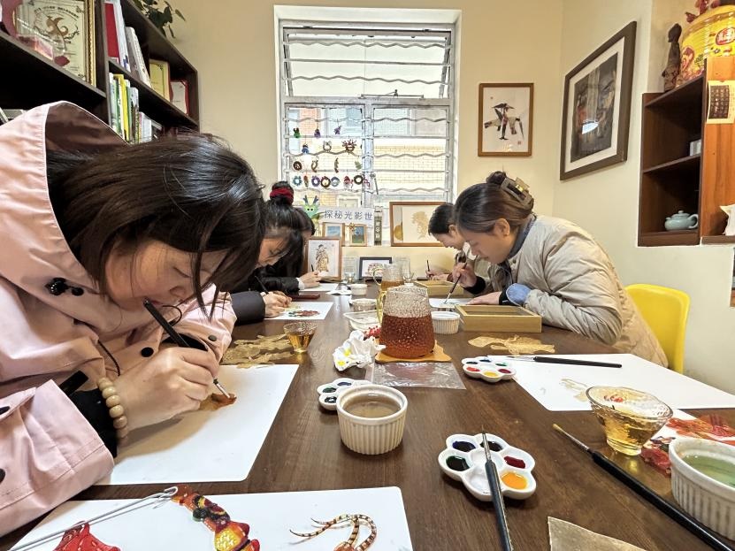 制作皮影,接受非遺熏陶。皮影戲是中國民間傳統藝術,它集說、唱、演為一體,具有深厚的藝術內涵和文化價值,也是本次活動的重頭戲。在皮影制作工作室活動中,專業老師先為大家奉上了一堂豐富的皮影知識宣講,增進了大家對皮影的歷史淵源和制作工藝的了解。進入實踐環節,選好圖案后,在老師的指導下,青年們手持雕刻刀,認真刻畫人物線條,再用色彩豐富的顏料賦予皮影鮮活的生命,每一個轉折都刻畫出對工藝的執著,每一個細節都凝聚著對傳統的尊重。最后用細牛皮條搓成線將皮影人物各個關節部分的“骨 眼”綴結,一件完整的皮影人即告完成。“學習皮影,不僅僅是學習一門技藝,更是深刻體會到一種精神,嚴謹認真、精益求精、追求完美的工匠精神。”一位參與活動的青年干部在完成自己的皮影作品后感慨道。