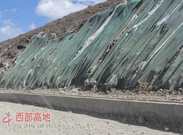 G318線隨處可見的環保措施,既阻止了風沙對松土的擾動,又保護了新播的護坡草籽。