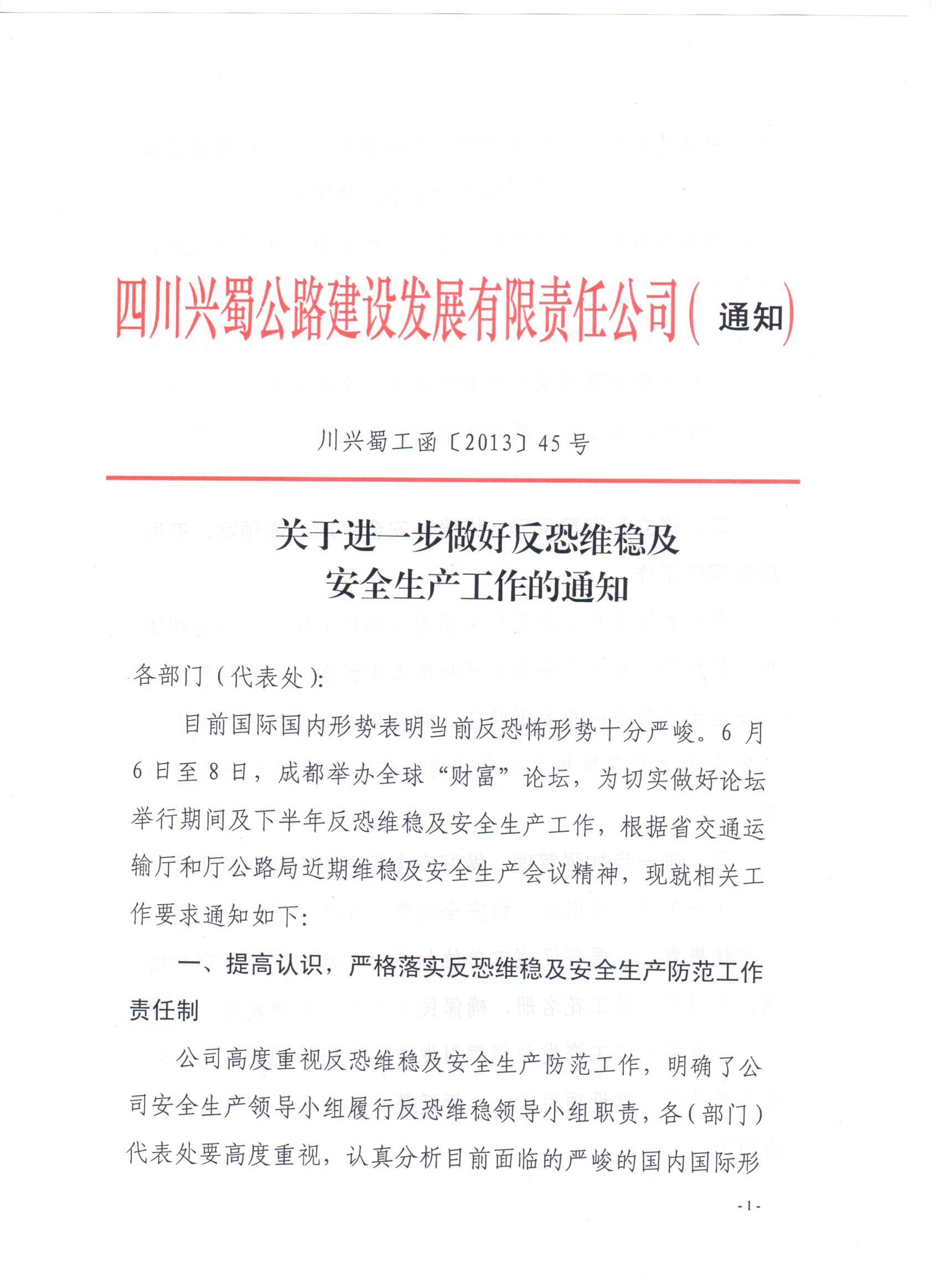 目前國際國內形勢表明當前反恐怖形勢十分嚴峻。6月6日至8日,成都舉辦全球“財富”論壇,為切實做好論壇舉行期間及下半年反恐維穩及安全生產工作,根據省交通運輸廳和廳公路局近期維穩及安全生產會議精神,現就相關工作要求通知如下: