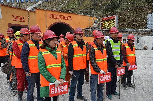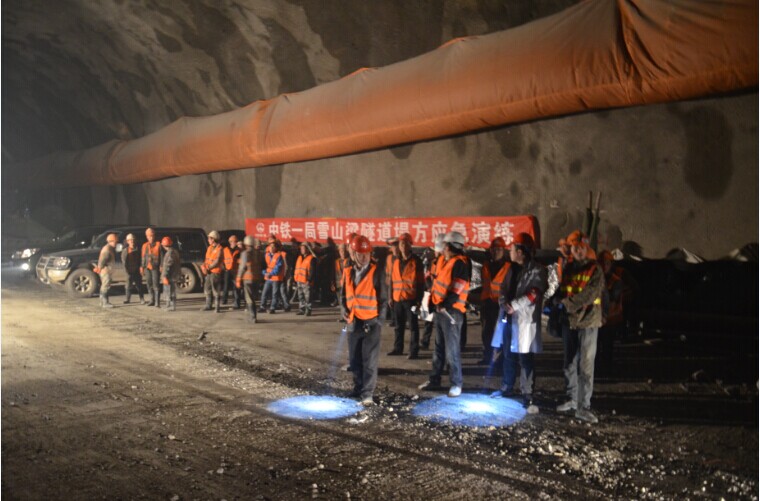 為提高全體參建人員的安全意識,強化項目的安全應急處置水平,2014年5月19日至20日,結合雪山梁隧道工程特點,分別在隧道A、B標段有針對性地開展了隧道關門坍塌,涌水、突泥等突發事件應急演練。