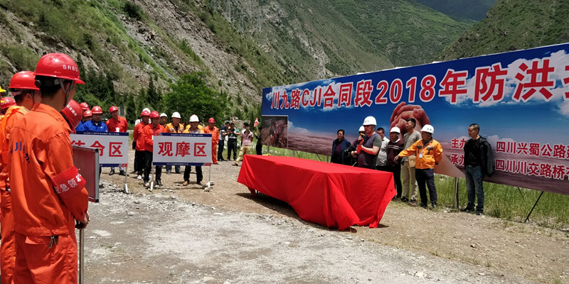興蜀公司G544線川主寺至九寨溝縣城段災(zāi)后恢復(fù)重建工程位于九寨溝地震核心區(qū)域,次生災(zāi)害隱患風(fēng)險(xiǎn)較高,為進(jìn)一步提升參建人員的防汛意識(shí),提高防洪救災(zāi)應(yīng)急救援能力,5月25日,川九路建設(shè)指揮部在CJ1合同段黑河大橋施工現(xiàn)場開展2018年度防洪搶險(xiǎn)應(yīng)急演練。九寨溝縣安監(jiān)局、防汛辦相關(guān)負(fù)責(zé)同志和興蜀公司川九路建設(shè)指揮部常務(wù)副指揮長樊增彬親臨現(xiàn)場進(jìn)行指導(dǎo)。