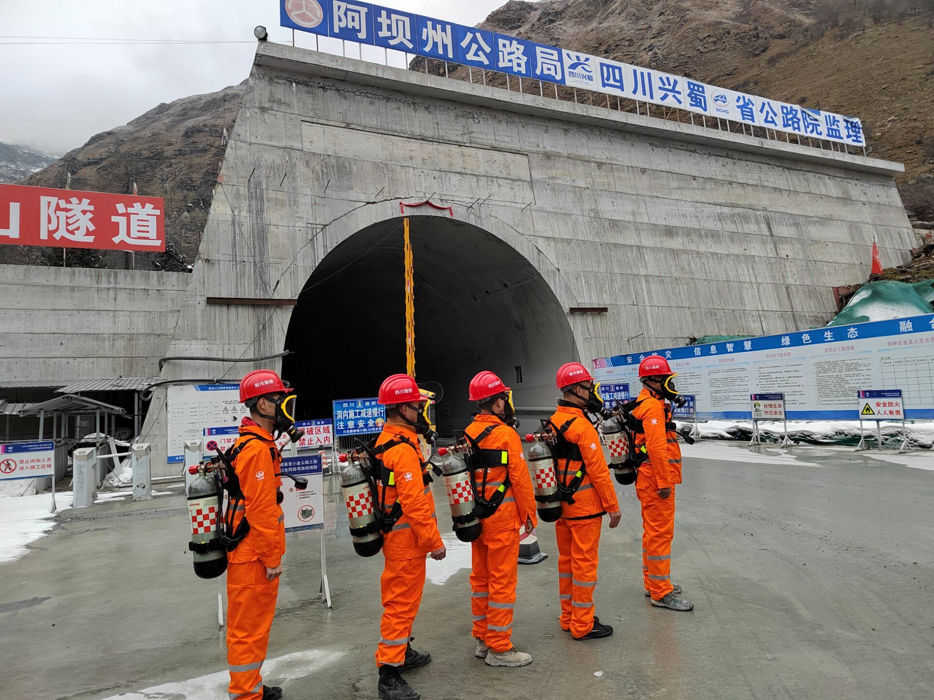 興蜀公司代建S450線理小路邛崍山隧道全長7030米,為雙向行車特長越嶺隧道,平均海拔約3800米,具有高海拔、高地應力、低氣溫、低含氧量、低氣壓的特點,主要不良地質有洞口淺埋破碎帶、圍巖大變形、巖爆和涌突水等,地質條件相對復雜,在施工過程中難度較大、危險性較高。為了保障在突發事件發生時,有明確的救援設備組織救援,并保障救援人員的安全,項目配備了一批正壓式空氣呼吸器作為項目應急救援裝備。該設備具有重量輕、體積小、使用維護方便、佩帶舒適、性能穩定等優點,是從事搶險救災、滅火作業理想的個人呼吸保護裝置。為了使呼吸器能充分發揮作用,并精心挑選了一批責任心強、能力突出、面對突發事件能第一時間做出應急對策的人員,組成火災事故、有毒氣體泄露等突發事件的專項救援小組。當發生火災事故、有毒氣體泄露等突發事件時,救援小組將穿戴好設備,確保自身安全情況下進行救援。同時,項目部對開挖支護作業人員配發防彈頭盔和防爆服,使作業人員在巖爆段落施工時有效保護作業人員安全。