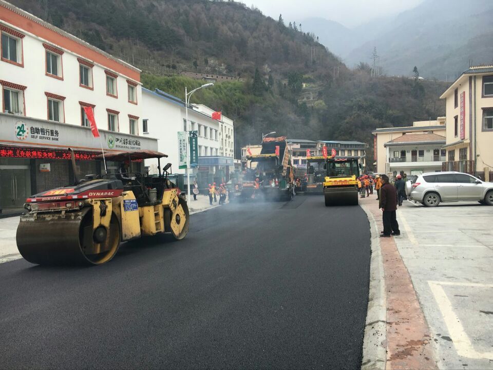 此次鋪筑的瀝青上面層試驗段全長約300米,厚4厘米,鋪筑樁號K23+100-K22+800,采用2臺攤鋪機、3臺雙鋼輪壓路機、1臺灑布車及其它機械設備進行攤鋪作業。興蜀公司映臥路指揮部高度重視此次試驗段的鋪筑工作,為確保一次性鋪筑成功,組織地方政府及參建各方進行現場觀摩指導,并對鋪筑溫度、施工工藝等進行嚴格控制,經過現場檢測,厚度、壓實度、平整度等重要技術指標均達到設計要求。