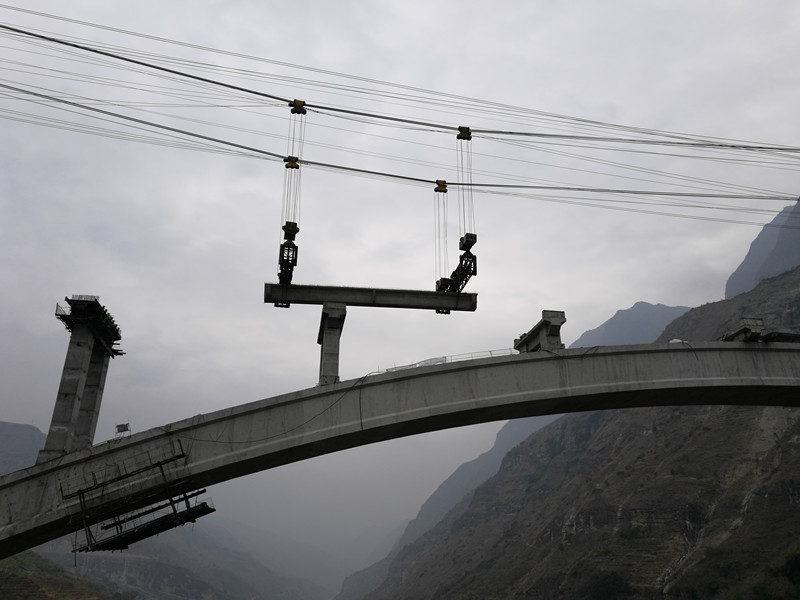 2018年1月13日上午7時30分,纜索吊裝65噸重的箱梁在經過4小時前行后,于11時53分平穩地將首片箱梁放下,標志著涼山布拖金沙江溜索改橋下部結構已全面完工,箱梁吊裝工作正式啟動。