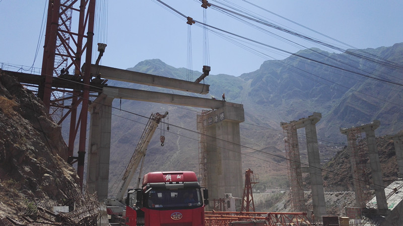 2018年5月15日,隨著運梁車運梁就位,70噸重的箱梁在重達100噸的纜索吊裝下,緩緩上升、平穩地落在了金沙江特大橋四川岸3-4號墩柱上,標志著興蜀公司金陽溜索改橋項目吊裝工作正式啟動,全面展開橋梁上部結構施工。