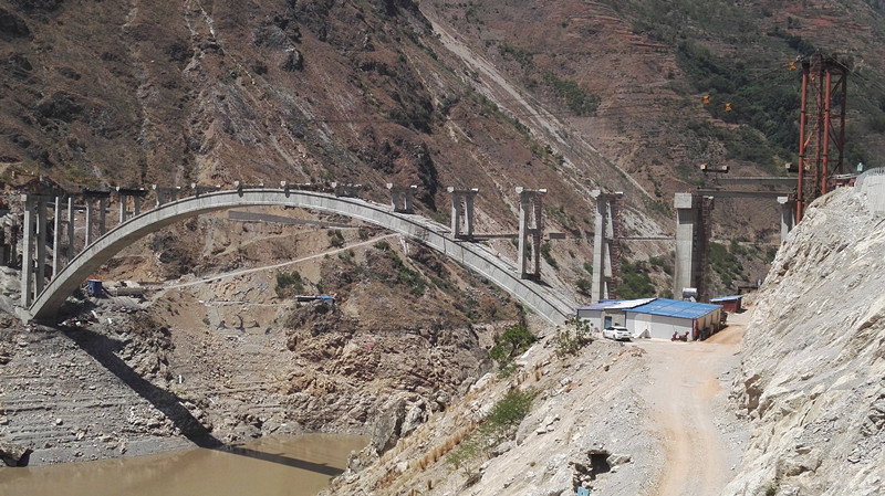 涼山金陽對坪溜索改橋全長392米,主橋采用凈跨280米的上承式鋼管勁性骨架懸鏈線箱板拱橋,跨徑居全省拱橋第三,行車道板采用68片預應力混凝土小箱梁。由于拱橋的結構和受力性能特殊,加上橋址位于深切峽谷區,地勢險峻,季風強勁,且風速沿橋軸線分布不均,嚴重影響吊裝施工,安全風險極大。吊裝前,金陽溜索改橋項目指揮部多次組織召開箱梁吊裝專題會議,深入討論吊裝安全專項施工方案、安全措施及應急預案,并對吊裝方案進行反復研究論證,確保吊裝安全、平穩。截至目前,橋梁下部結構已全面完工,力爭7月初實現大橋建成通車。