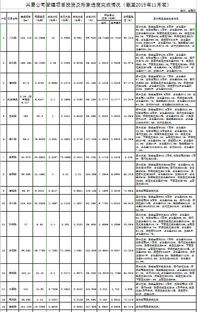 興蜀公司管理項目投資及形象進度完成情況(截至2019年11月底)