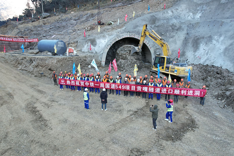 2022年12月4日,興蜀公司代建國道549線九石路貢嘎隧道進口順利提前10個月進洞施工。貢嘎隧道是全線控制性工程,主洞長9.961km,平導洞長9.584km,是目前國內最長的單洞對向行車特長隧道。隧道圍巖地質條件差,存在巖爆、大變形、突水等安全隱患,施工難度大、安全風險高。